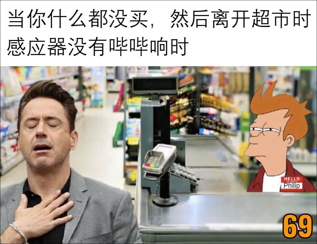69meme:当你什么都没买,然后离开超市时感应器没有哔哔响时