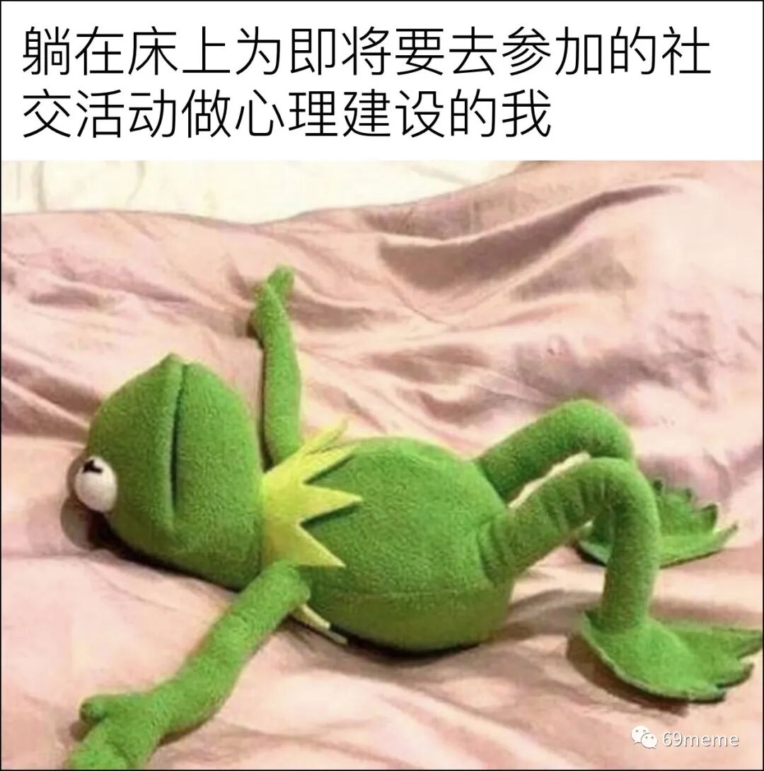 69梗图:躺在床上为即将要去参加的社交活动做心理建设的我