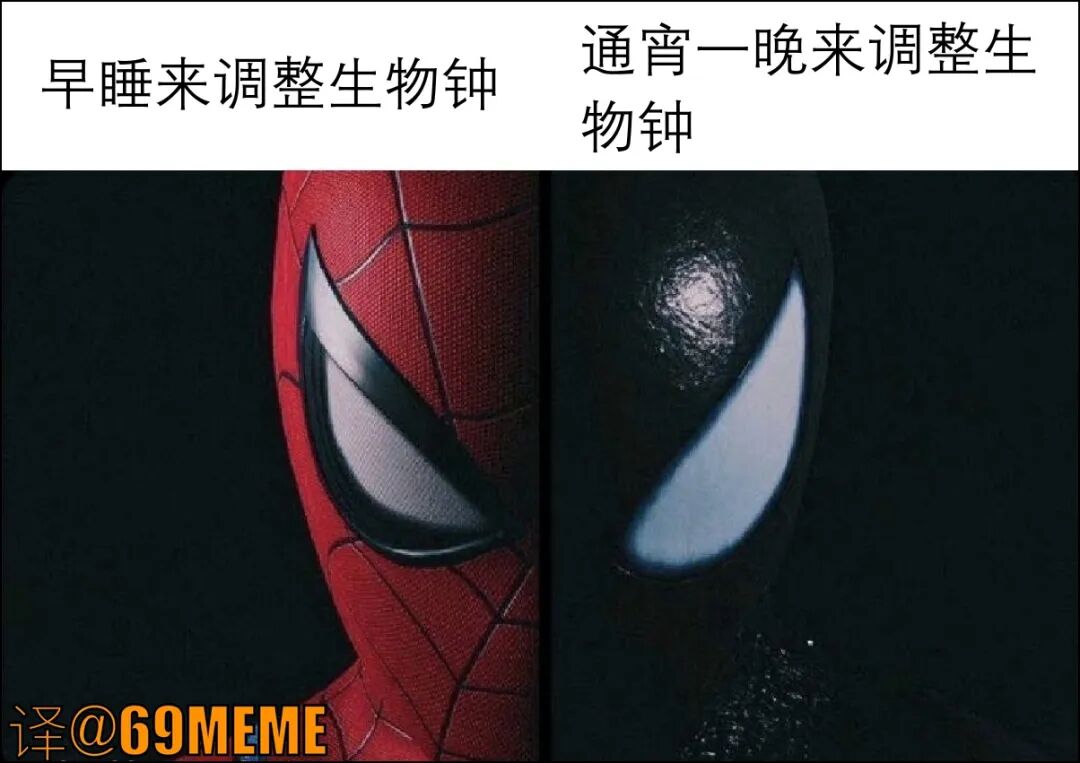 69梗图:早睡来调整生物钟 VS 通宵一晚来调整生物钟