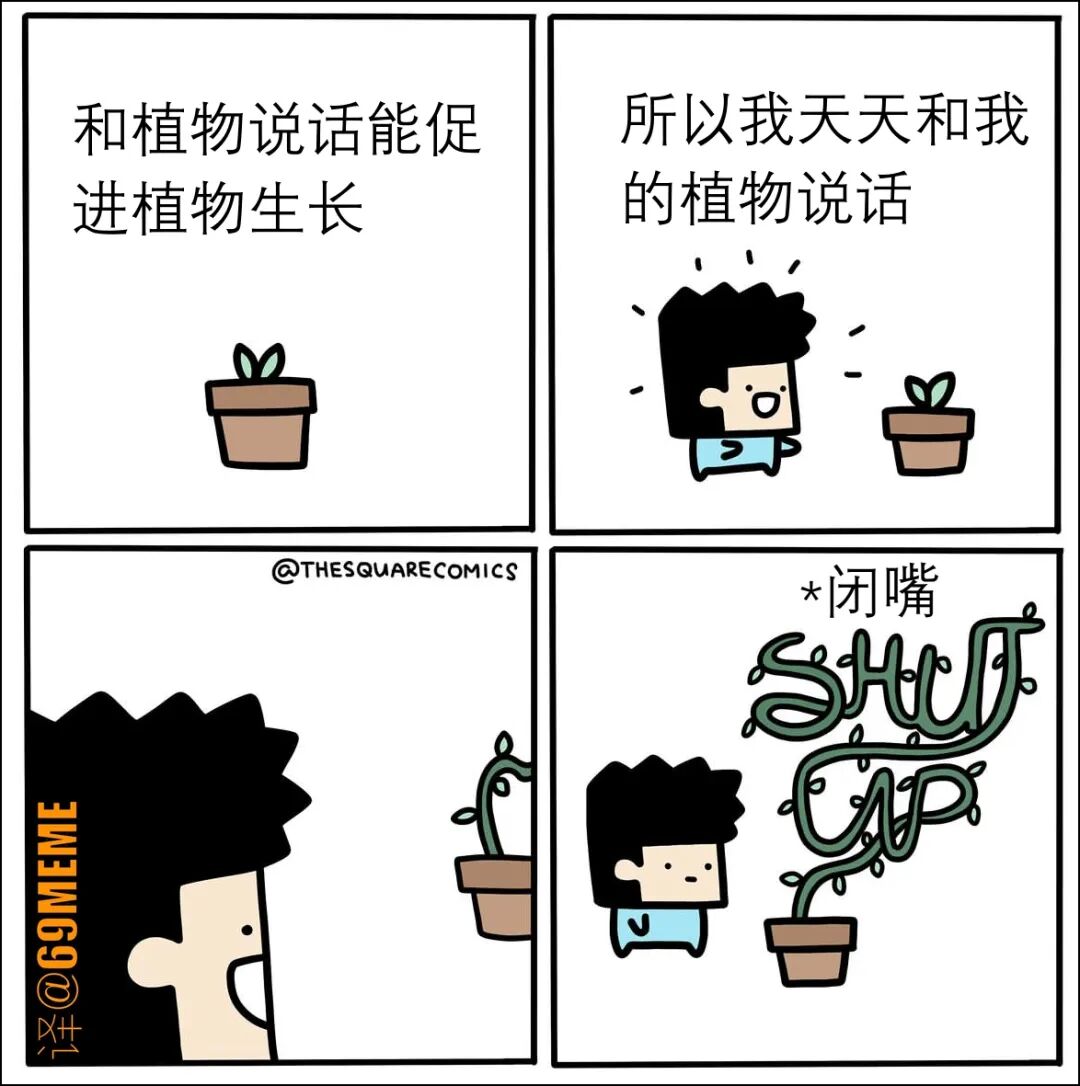 69梗图:和植物说话能促进生长,所以我天天和它说话