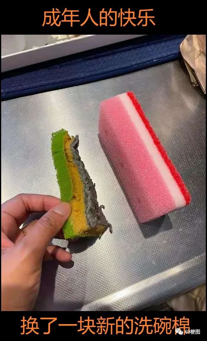 梗图合集:成年人的快乐,换了一块新的洗碗棉