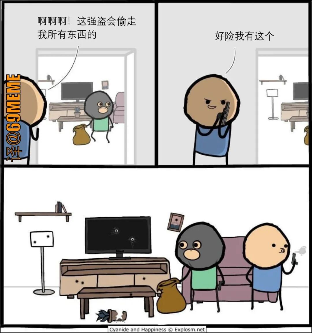 69梗图:啊!强盗会偷走我所有东西的,好险我有这个