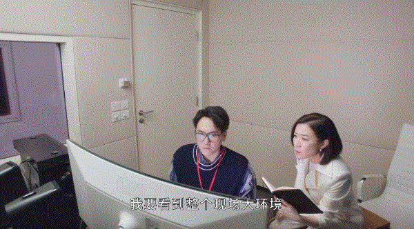 女主在工作时,面对采访对象。