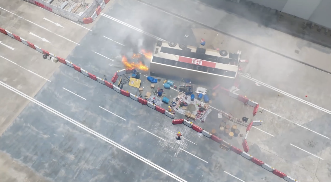 刚出场,一辆双层巴士在公路侧翻,造成重大交通事故。
