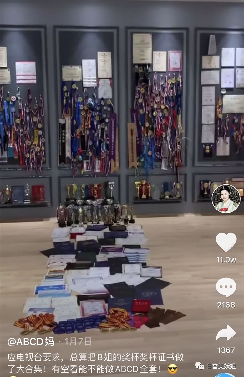 而孩子们也给出了一摞摞的奖状、奖牌作为回报,单单是B姐一个人的,就占满了一面墙。