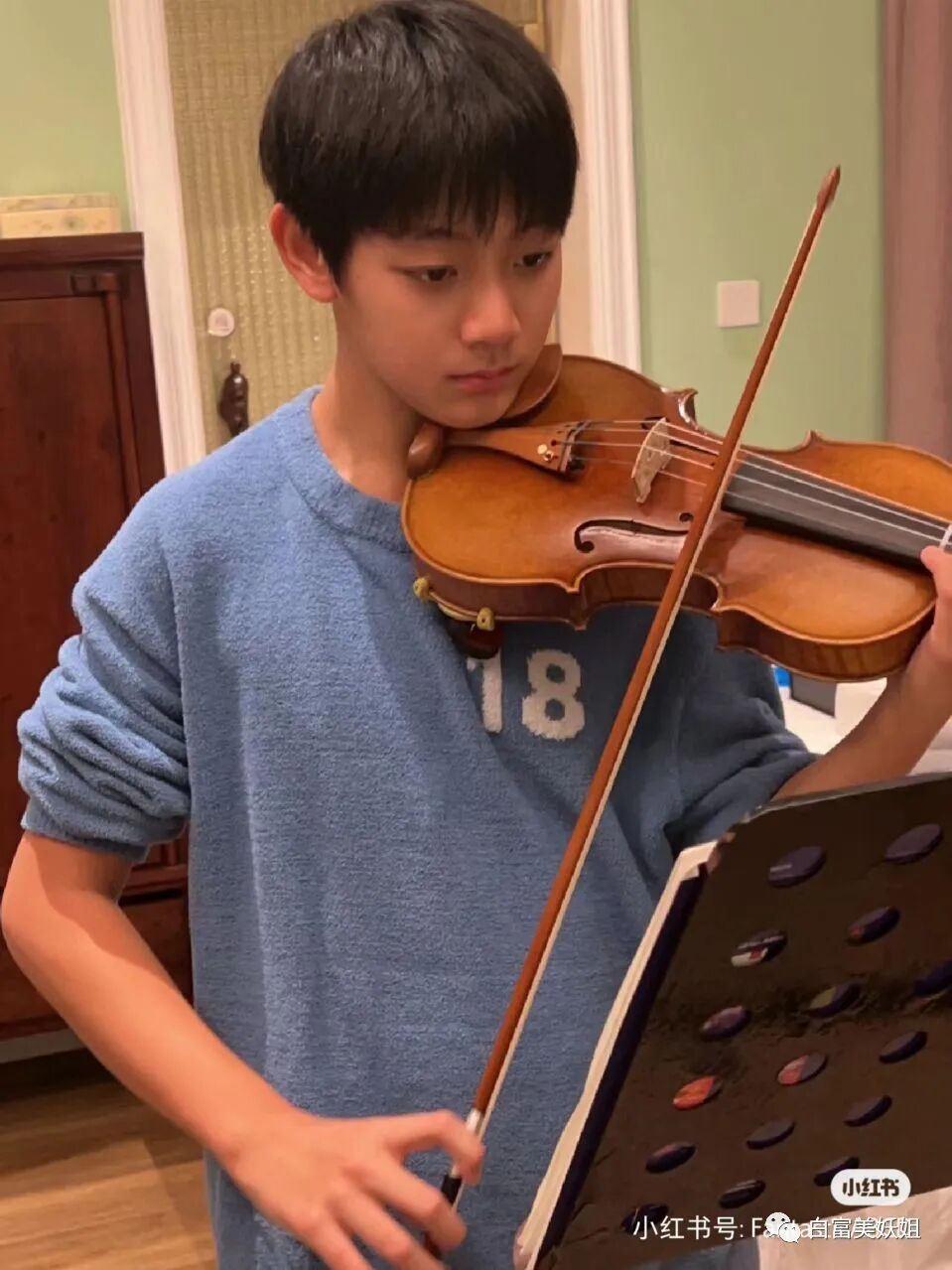 他会敲箱鼓、打篮球、滑雪,也会在妈妈的“哄骗”下苦练拉小提琴。