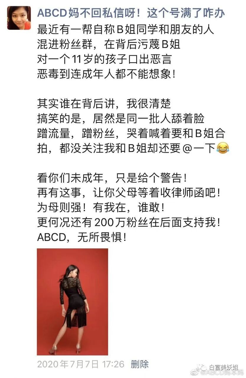 金妈那边给出的回应是B姐才是在学校被霸凌的那个。