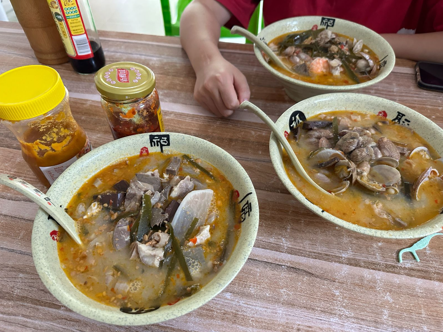 推荐9块钱一大碗的猪杂糟粕醋,还可以免费加汤,主打一个好吃、量大、管饱。海鲜糟粕醋也不错,海鲜很新鲜,海白虾吃起来鲜甜弹牙。