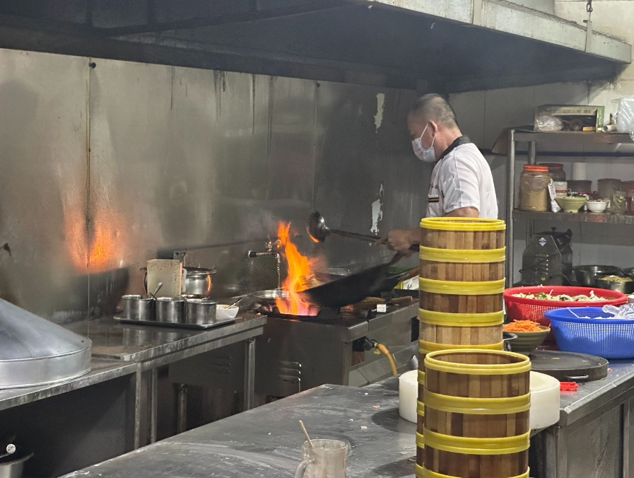 这家店的小吃大部分是海南本地小吃和广式小吃。比较推荐炒海南粉,充满美拉德反应的香气,路过后厨时果然看到了明火爆炒的美景。