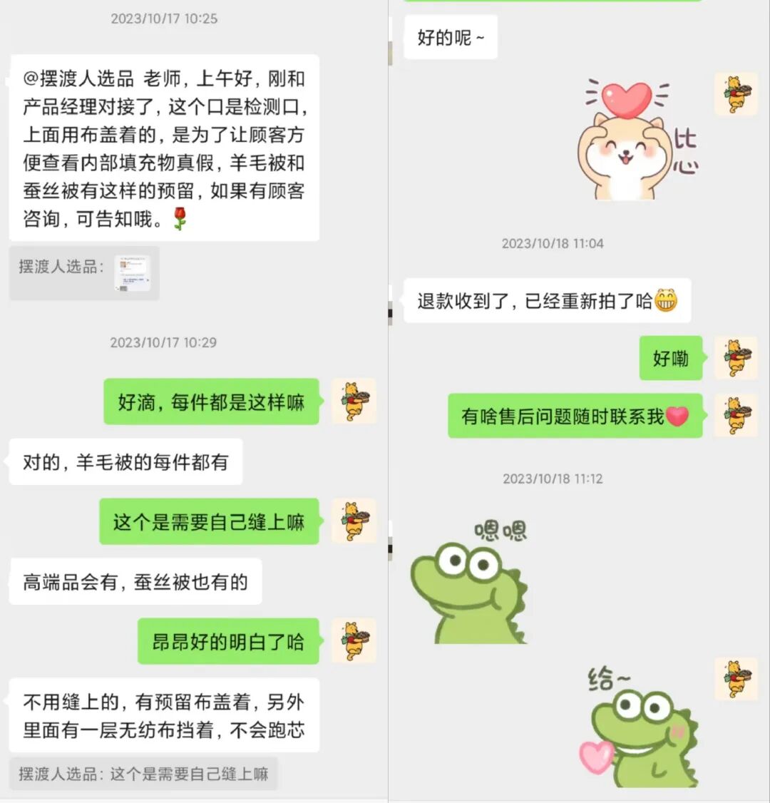 经历了这一次售后事件,无论是羊毛被的质量,还是品牌方的态度,都让摆摆更有底气去重新推广这款性价比超高的羊毛被。