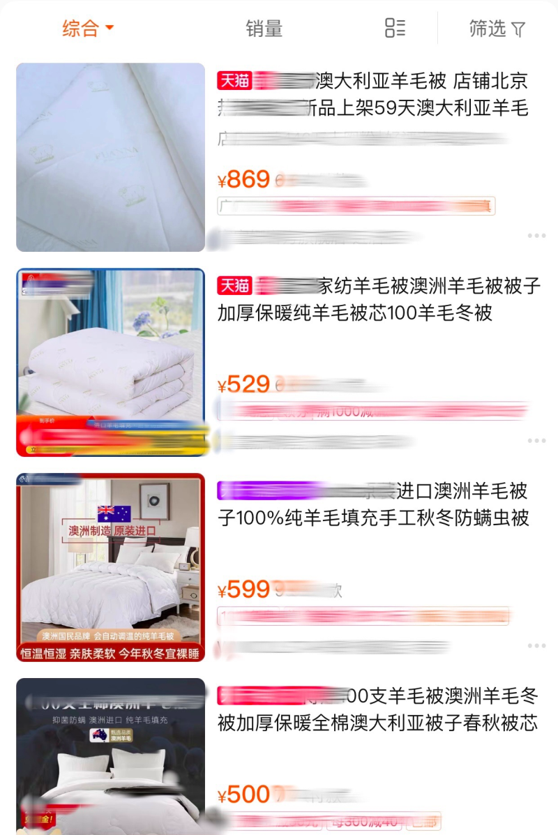 价格很低的羊毛被,羊毛含量都不足50%,甚至有的会分层,某一层标识100%,以此乱真。
