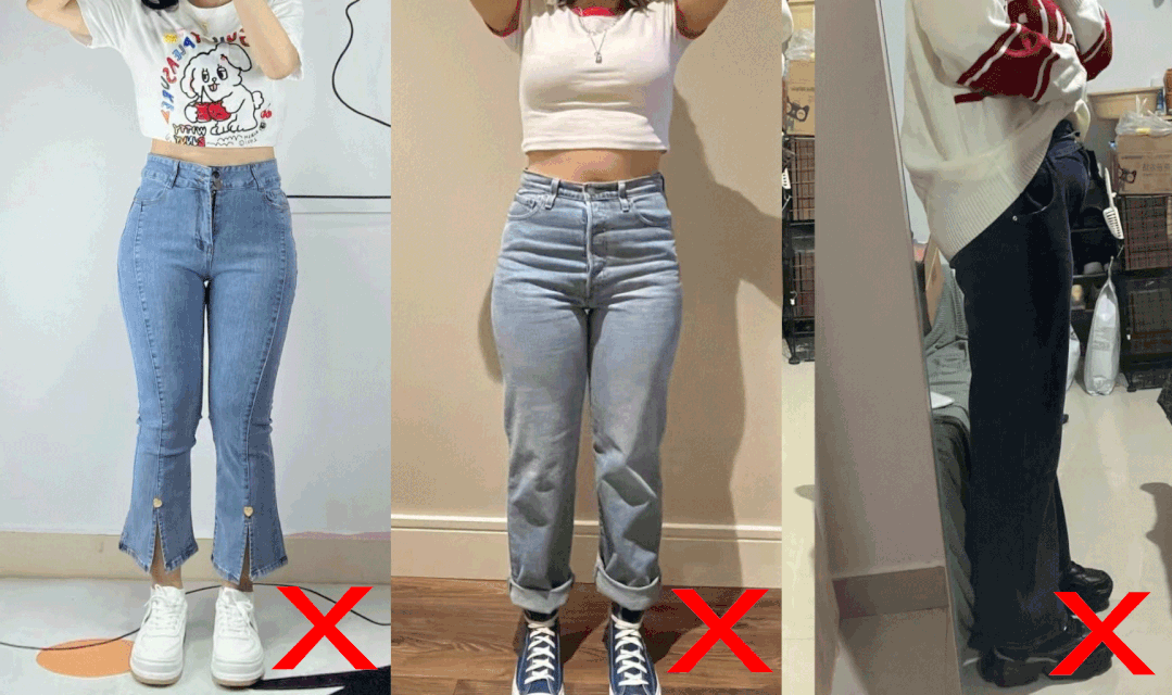 穿在别人身上细长直的牛仔裤,穿在自己身上等于向全世界宣告:快来看,我有俩大粗腿!