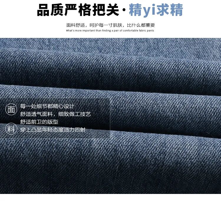 面料纹理细密,更显质感,走线也比一般的牛仔裤要精细严密,随便拉扯都不怕脱线
