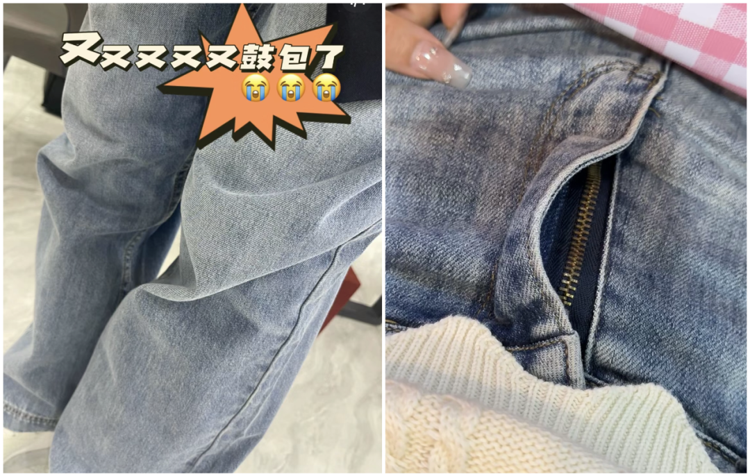 但是很多牛仔裤穿久了膝盖都有鼓包的情况,甚至拉链位置鼓裆不贴合,很影响质感,看起来就很尴尬~