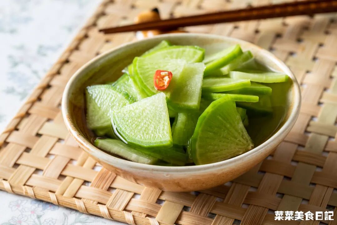 100g水+100g冰糖煮至融化,加150g白醋晾凉,1斤萝卜切片后放进去腌渍隔夜即可