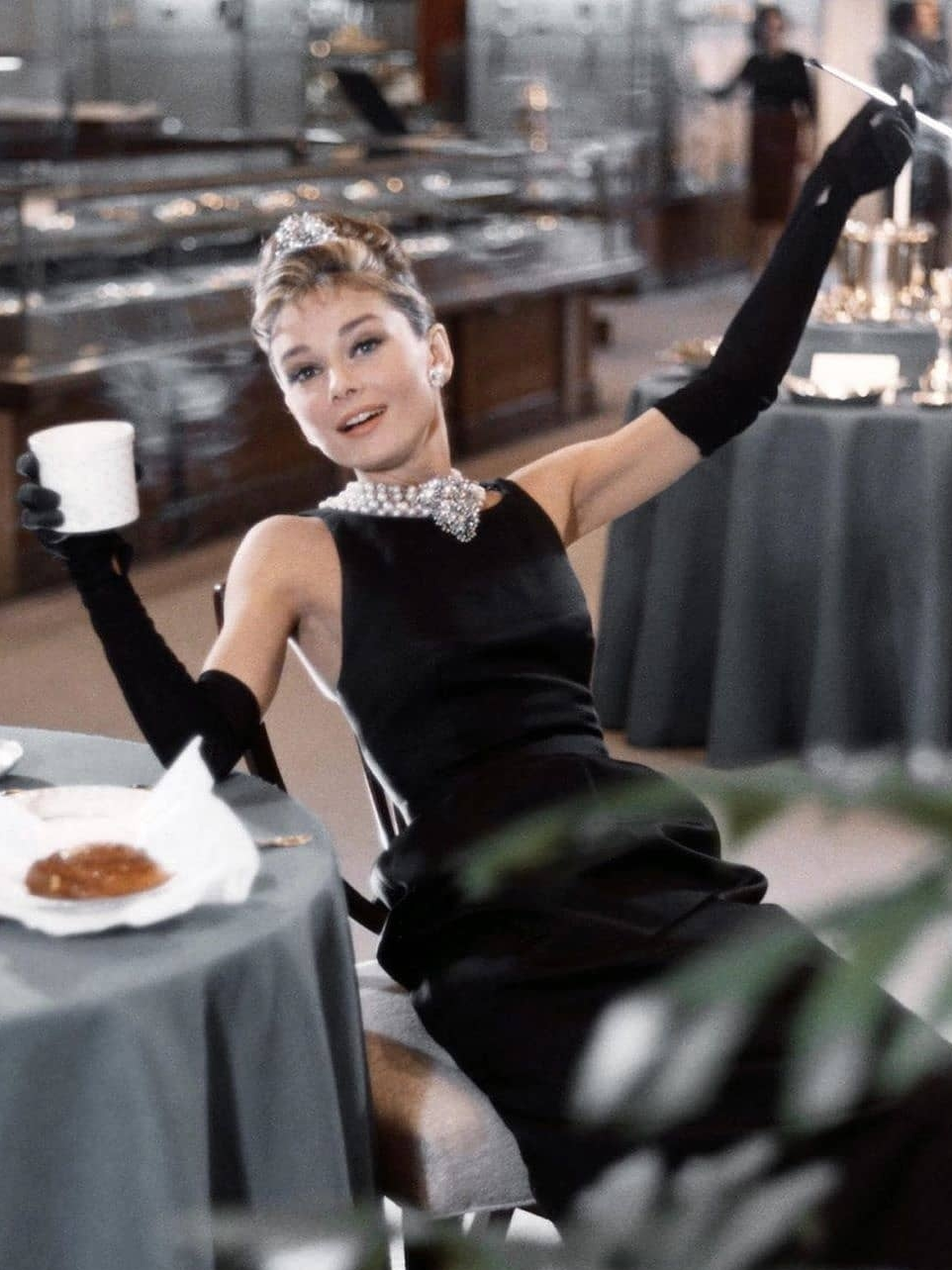 赫本在《蒂凡尼的早餐》中,身穿一袭小黑裙站在橱窗前,这一幕在时装史乃至整个电影史上,都是永恒的经典。