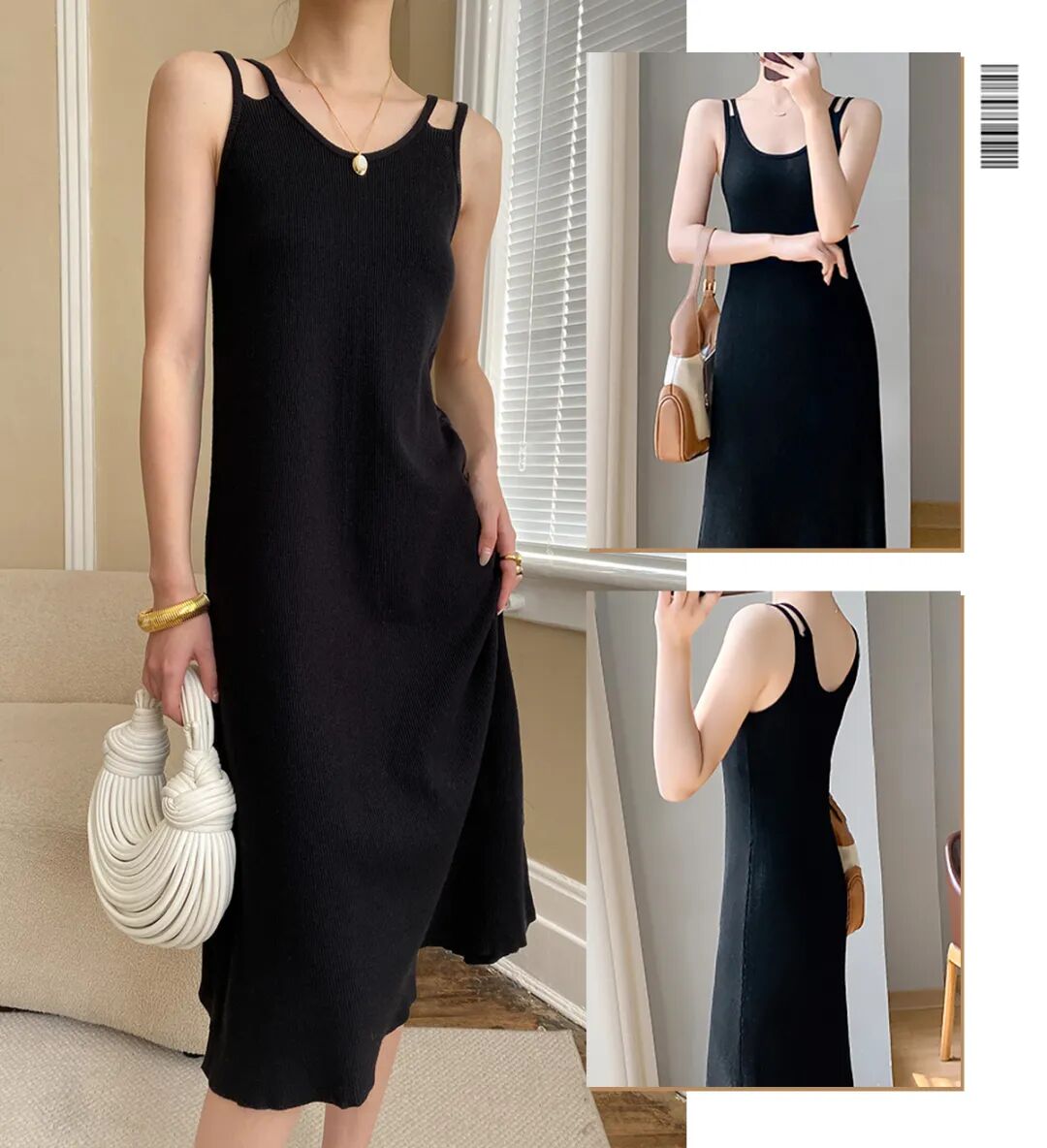 双肩吊带,打破了常规小黑裙版型的肃穆,不寡淡更显纤瘦,轻盈又清凉,还增条不少女人味。