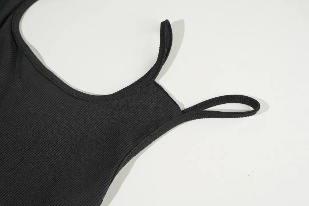 双吊带的无袖设计,把露与藏的分寸拿捏的是太好了,上身露出大面积的肩颈线条,很好修饰双肩的斜方肌。