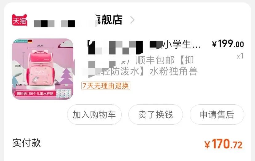 差不多功能和质量的书包之前我给我侄女买过,原价199元,券后实付款也要170多元。