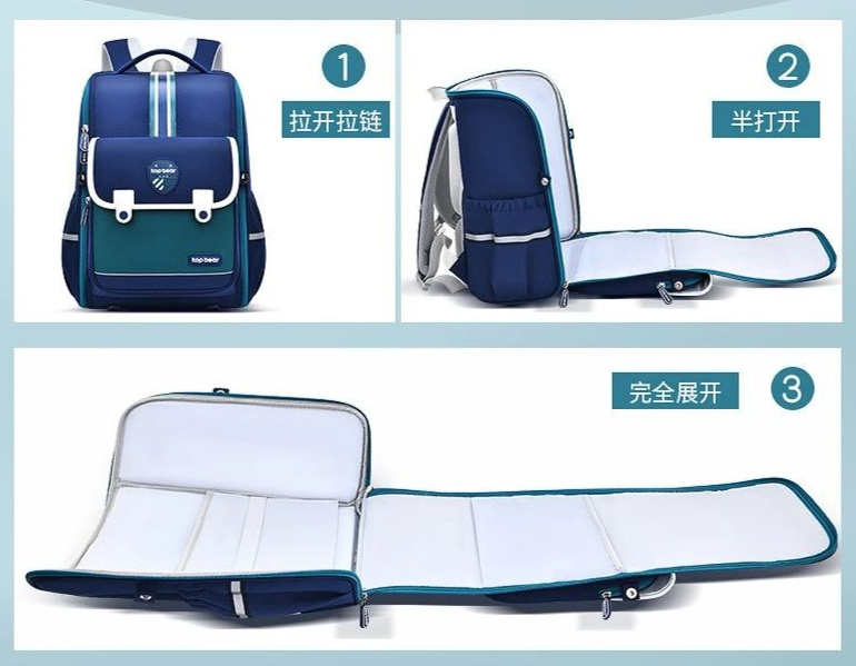 1 人体工学设计,升级护腰护脊,S曲线肩带加宽加厚,防滑护脊胸口设计,3D立体U型背垫设计,透气网孔不闷热。 2 一体式大容量设计,功能性up,分层收纳巨能装,培养孩子自主整理习惯 3 自重超轻,安全反光条设计,荷叶式防泼水设计,防滑脚垫,使用寿命长 |