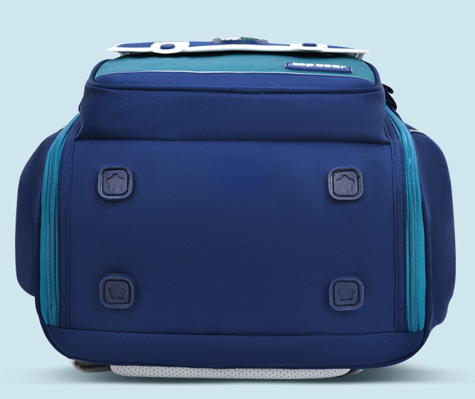 这款书包底座上有四个脚钉,既能保持书包底部干净,又可以有效防止书包放在地面上的时候摩擦损坏底部的面料,延长书包使用寿命。