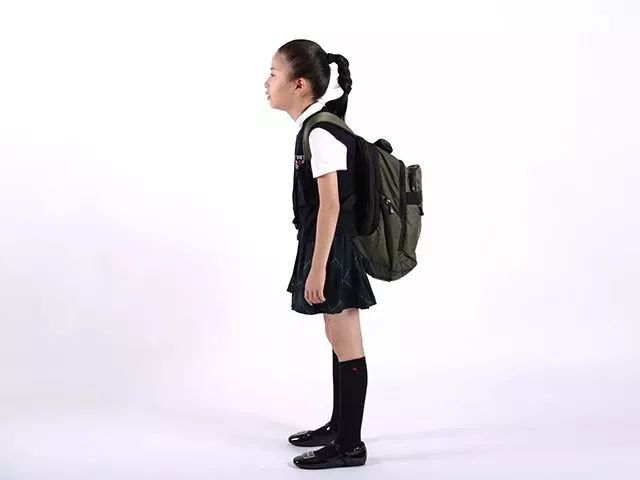 这个时候书包一重,背部重量突增,孩子为了平衡书包往后扯的拉力,很容易出现前弓背、伸脖子等等一些不正确的姿势。