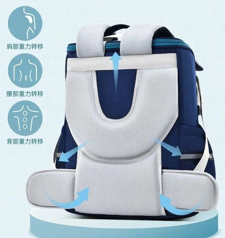 家长们应该最关心的就是护脊功能,小学阶段,正是孩子们身体发育的关键期,如果长期背着超重的书本,姿势不正确,很容易弯腰驼背含胸,影响脊柱健康。