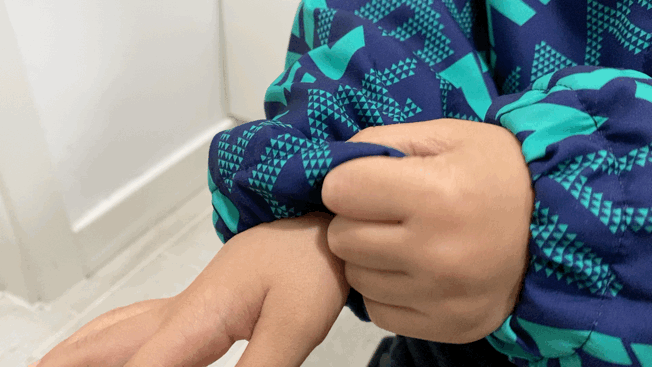 袖口是缩口设计,防止冷风倒灌;松紧合适,方便孩子活动手腕。