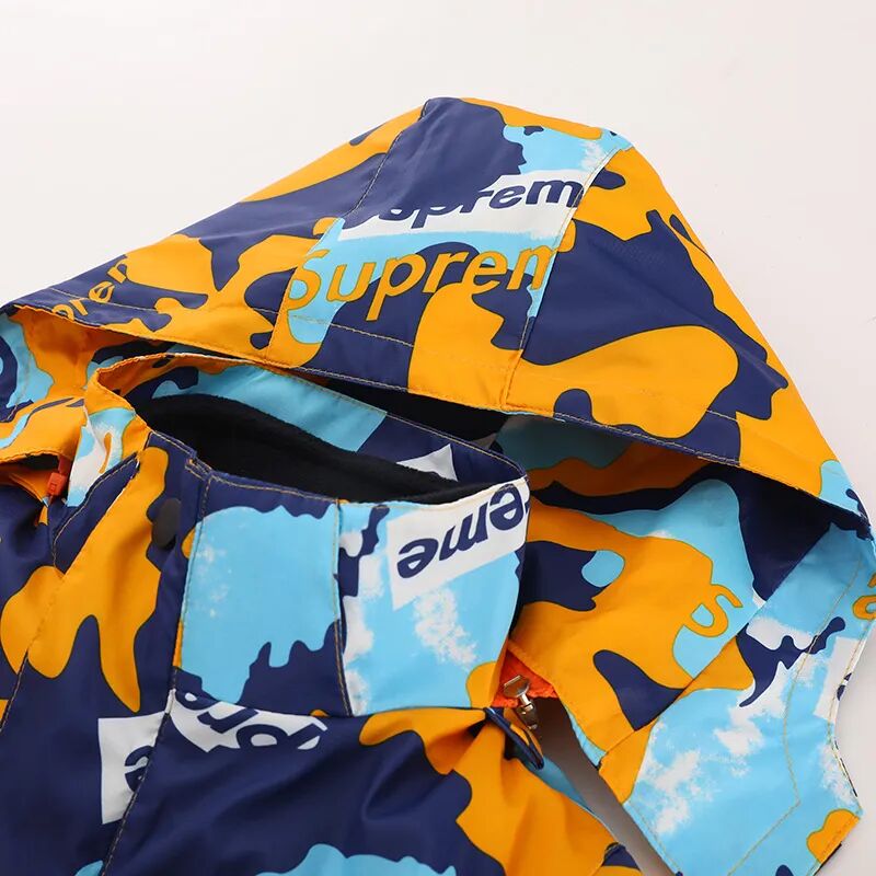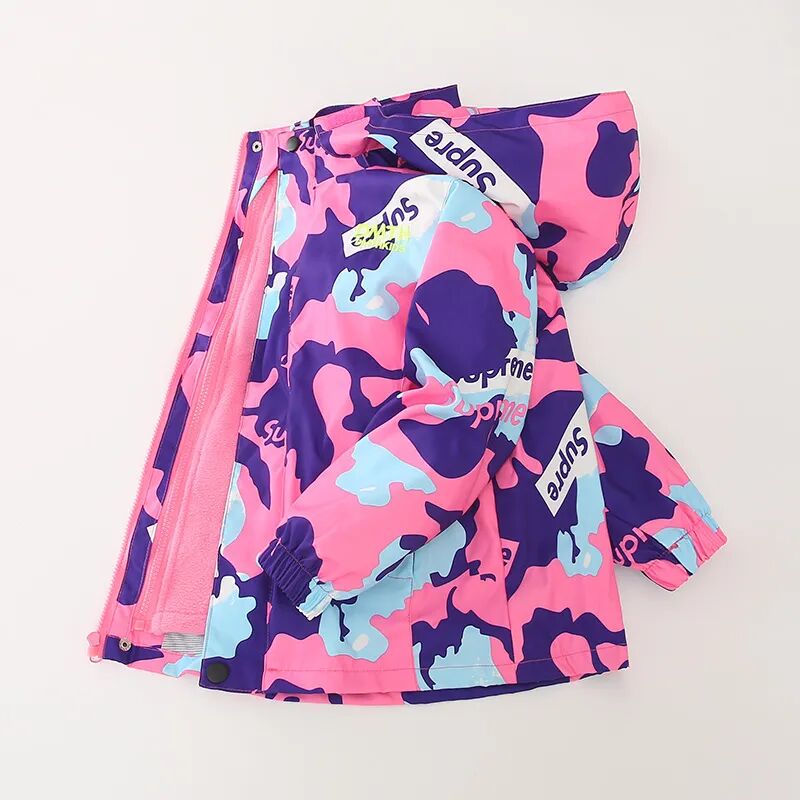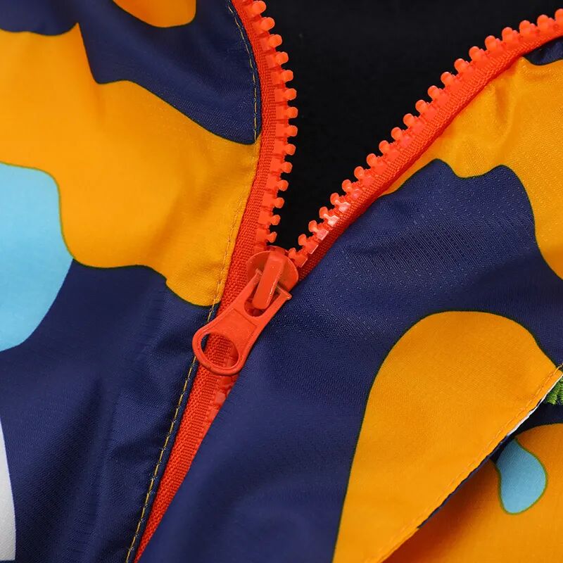 咱们这款冲锋衣,告别土味设计和花色,采用的是很活泼亮眼、不俗气的撞色印花。