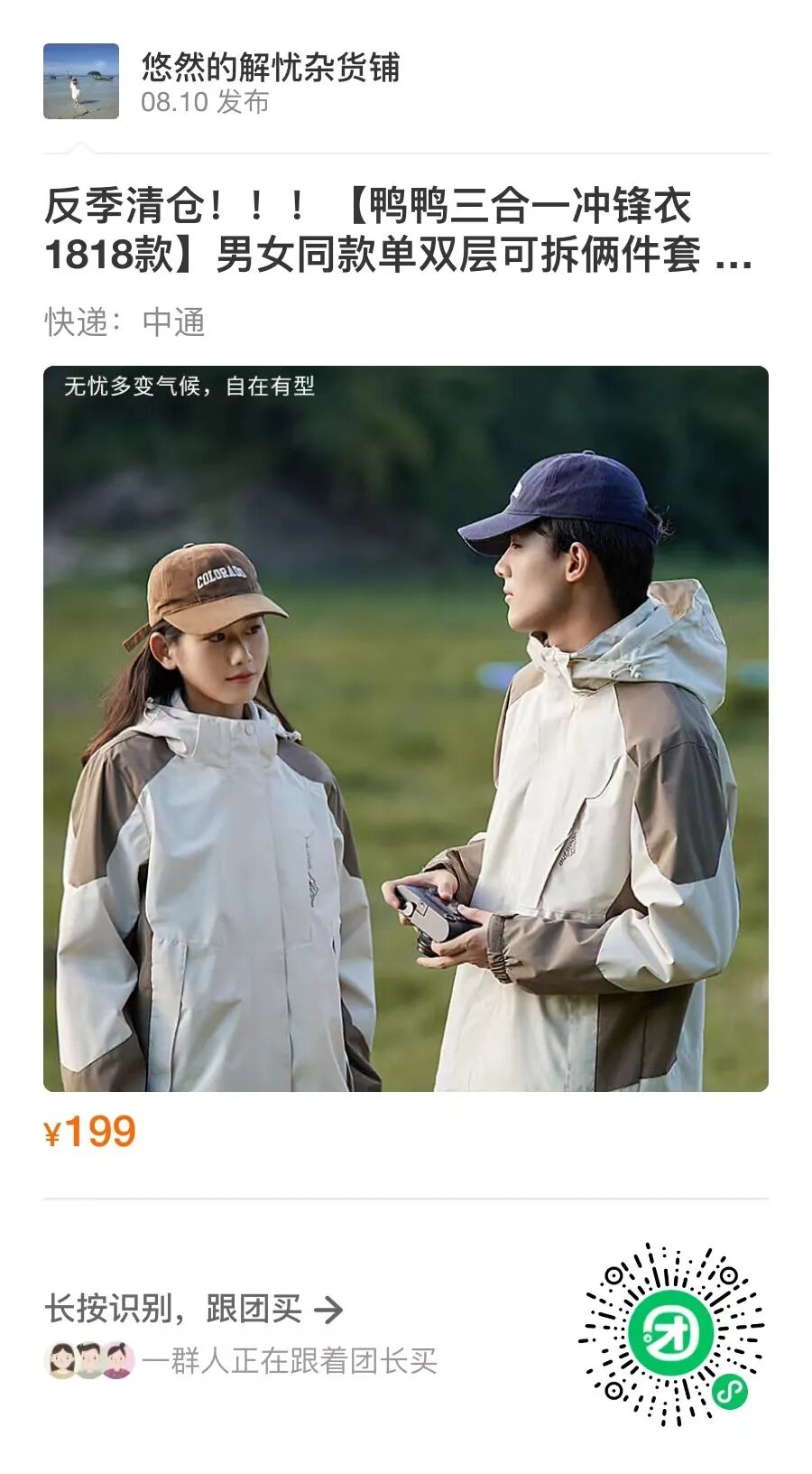 防风、防雨、又保暖,关键是还可以拆卸,单穿、组合穿,一件衣服瞬间变成三件。好穿又实惠!