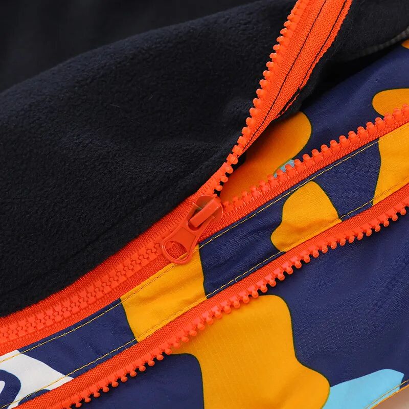 摇粒绒内胆,和外层冲锋衣,通过拉链相连,穿脱方便,孩子自己就可以操作。