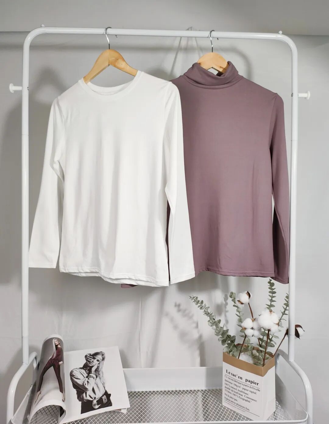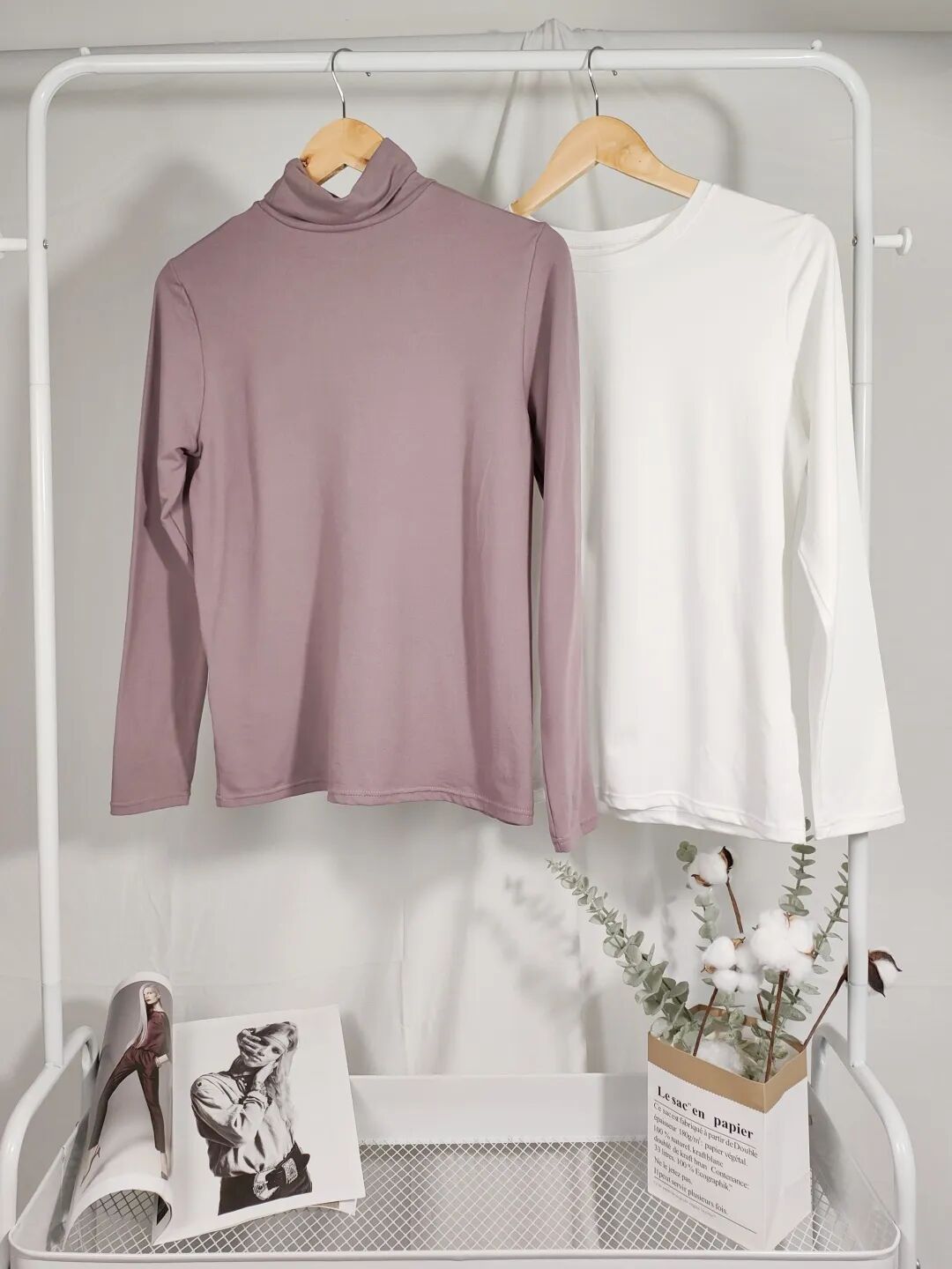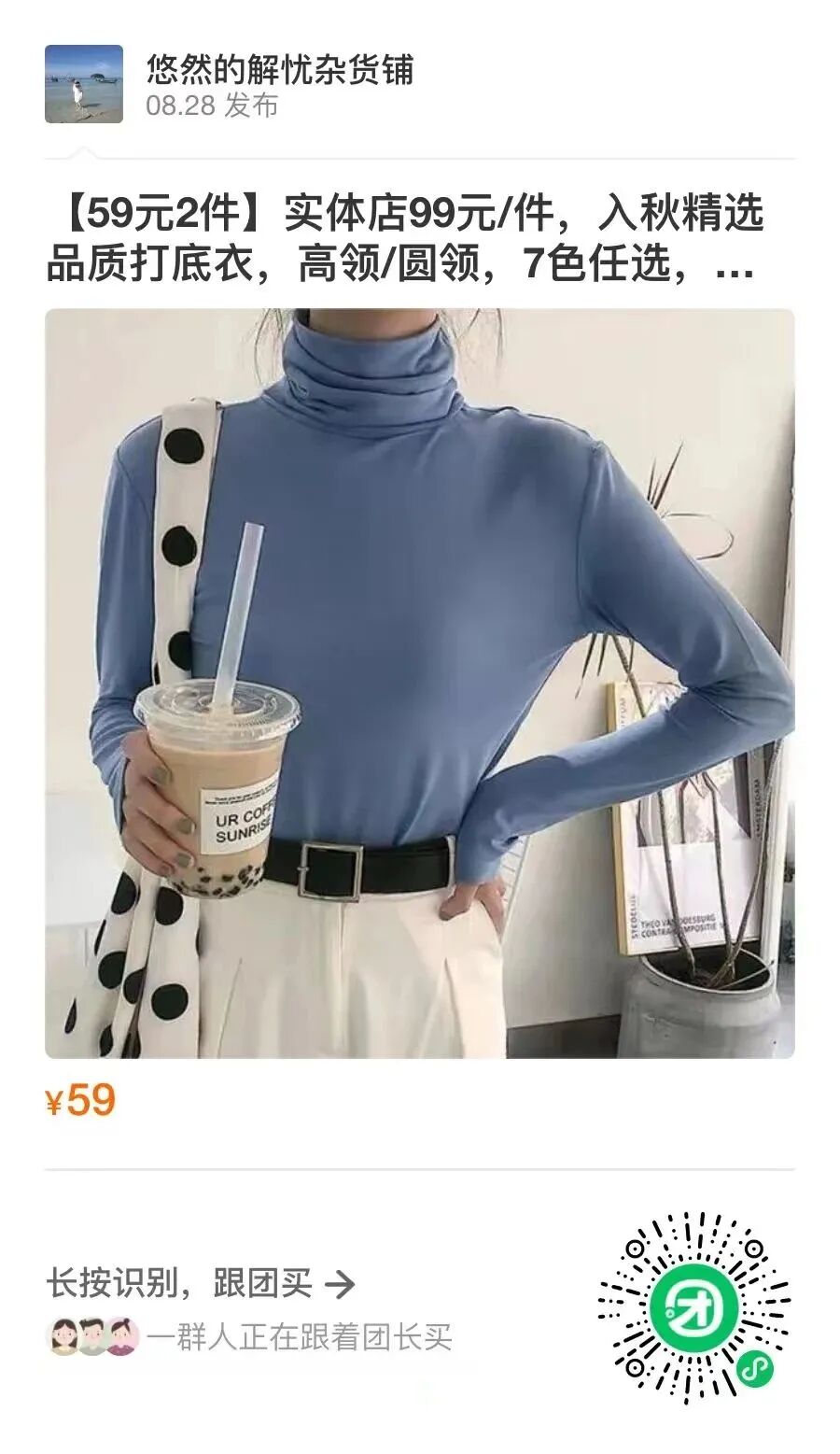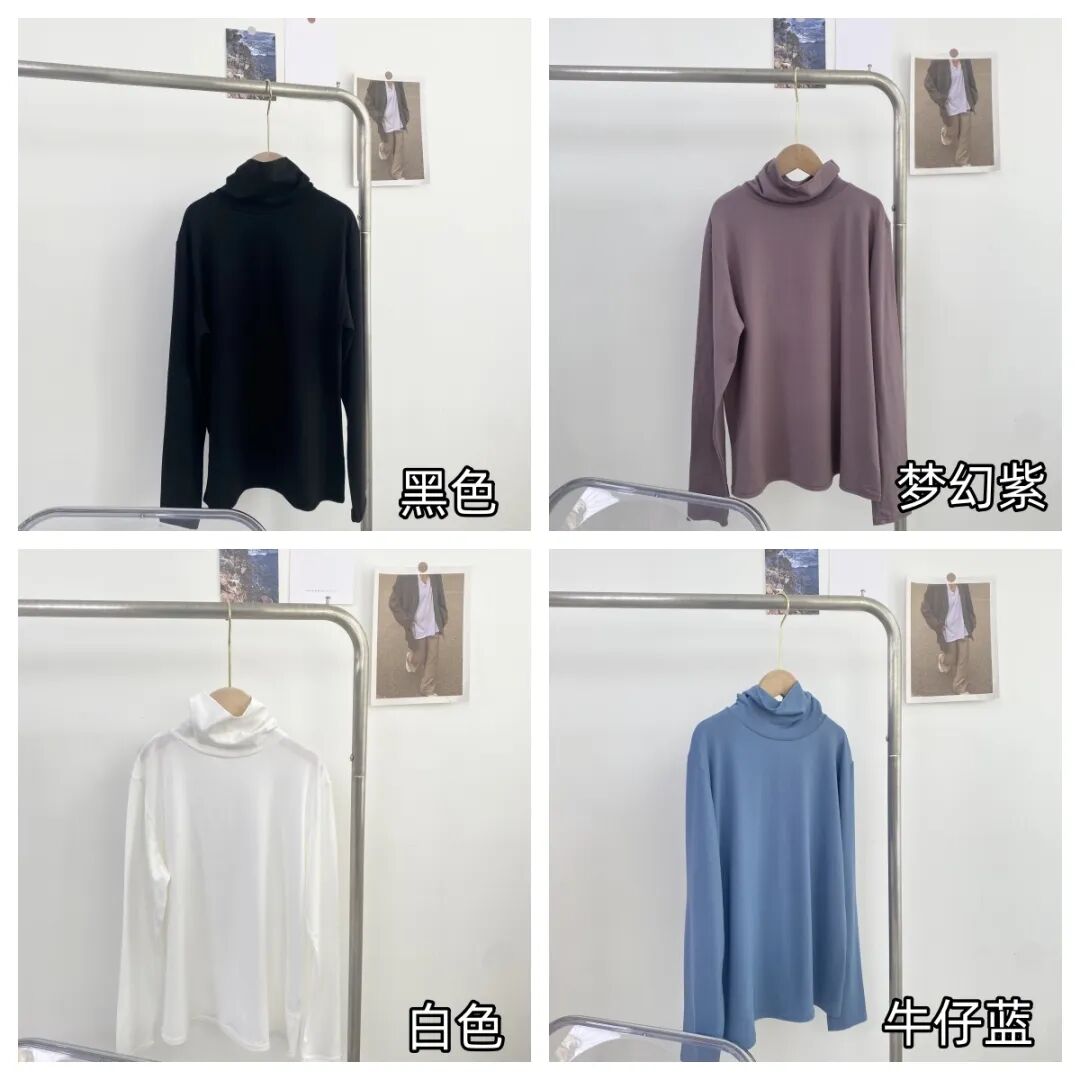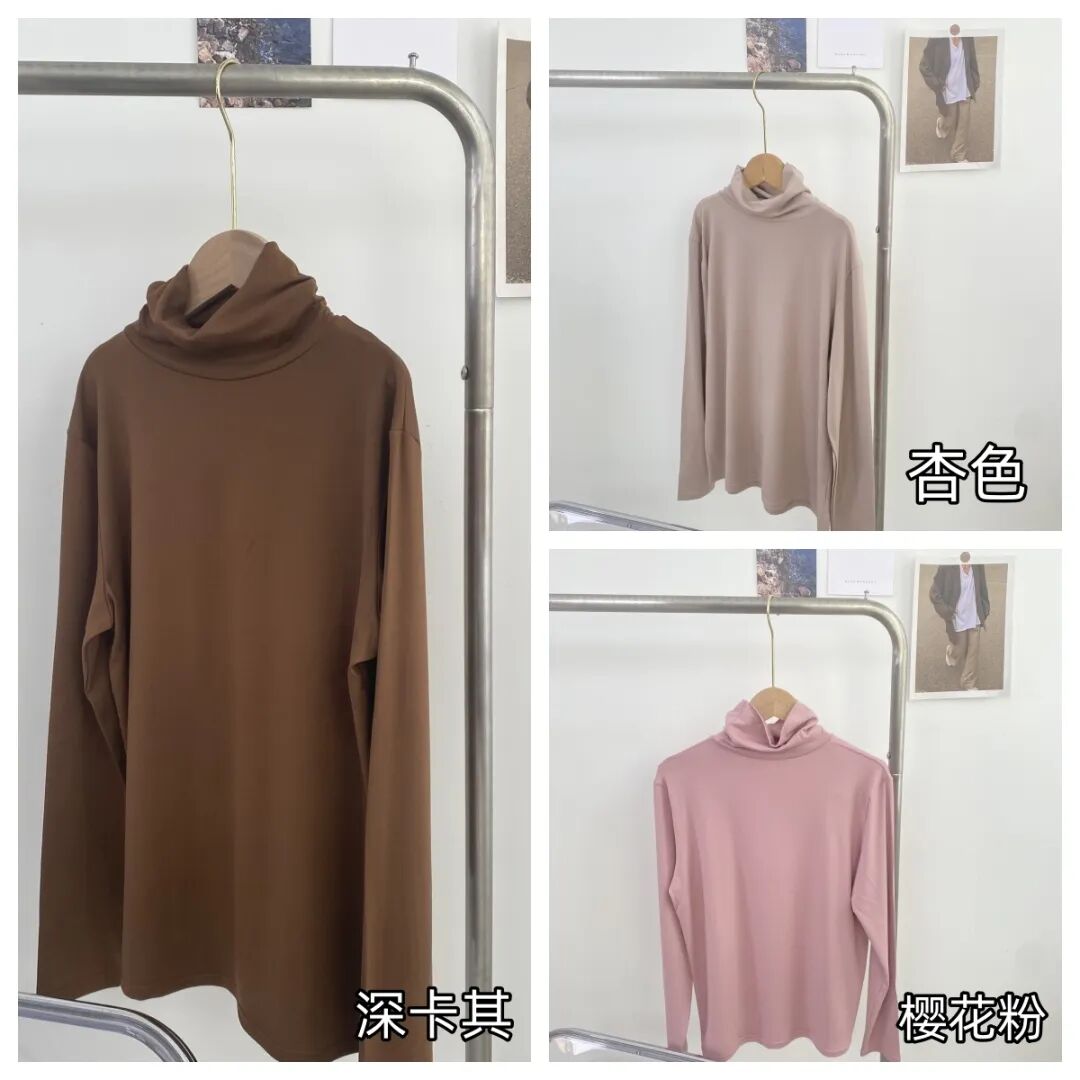 打底衫还有两个款式可选,分别是圆领款和高领款。