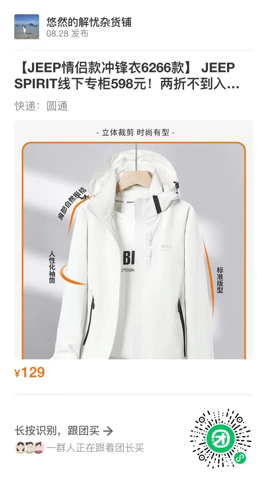 况且现在纯色版、迷彩版129元的价格,因为现在还没那么冷,厂家才同意促销打折。
