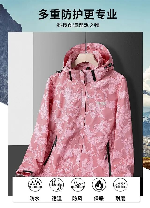 这款版型时尚,男士上身利落有型,女士穿大方有气质、飒爽精神的冲锋衣,线下专柜得卖到598元。