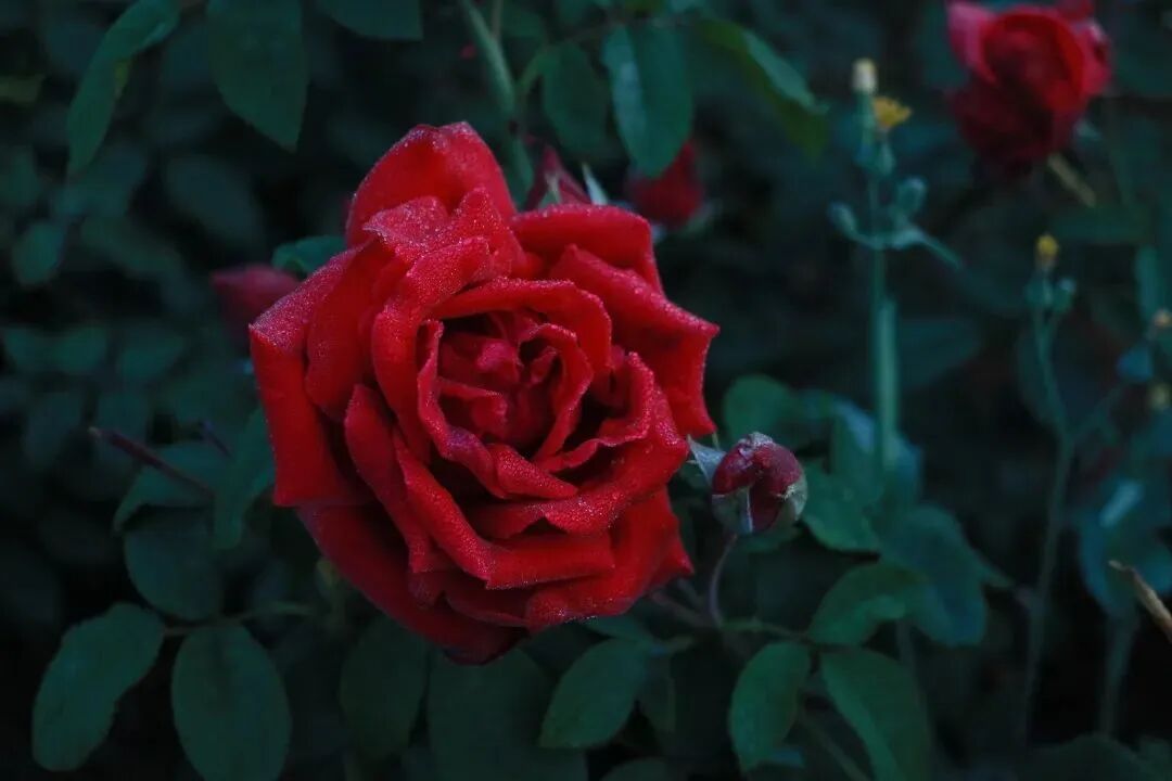 每天至少6到8小时左右的阳光直射,会让喜光的墨红玫瑰以最完美的姿态展现在我们的面前。