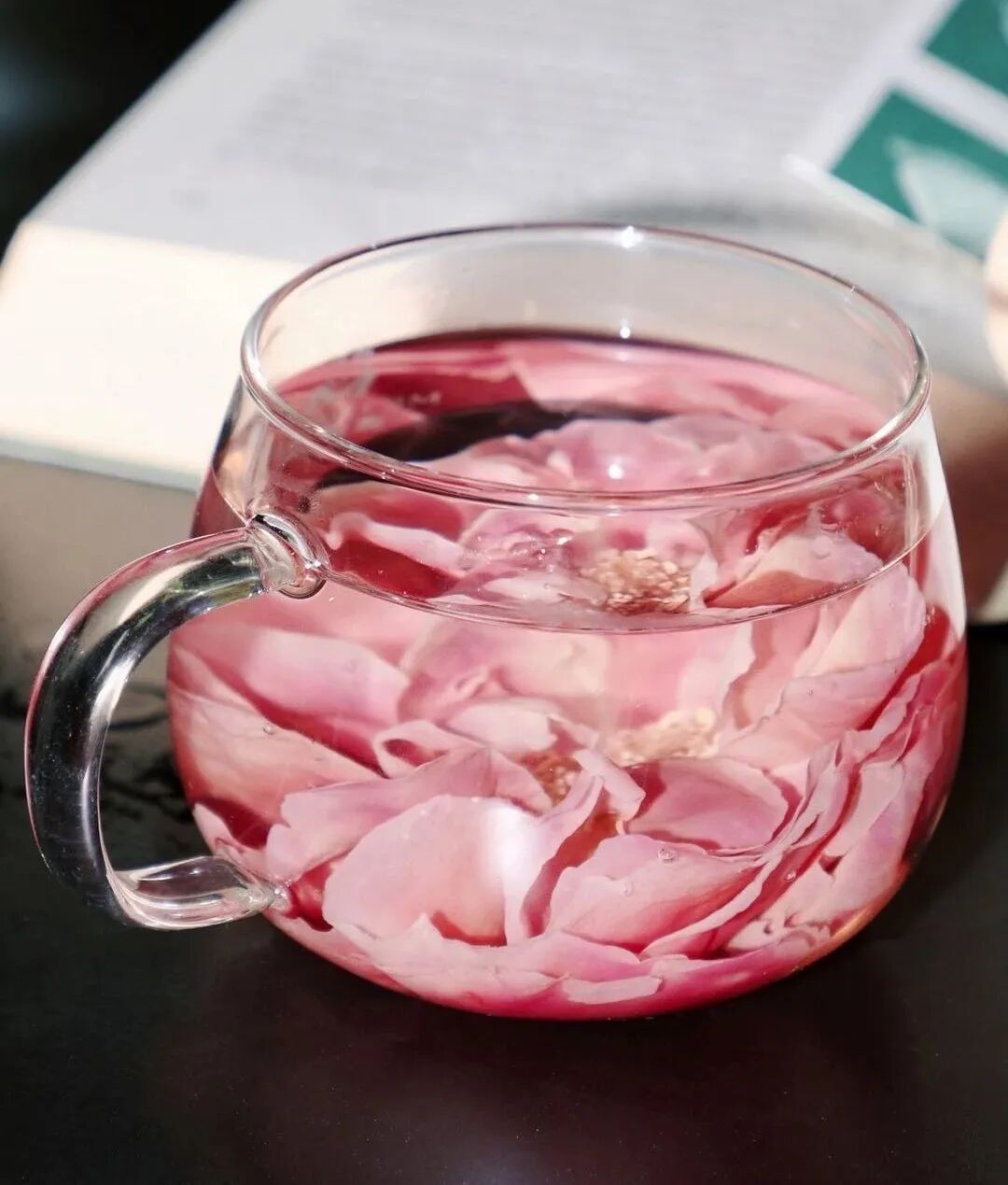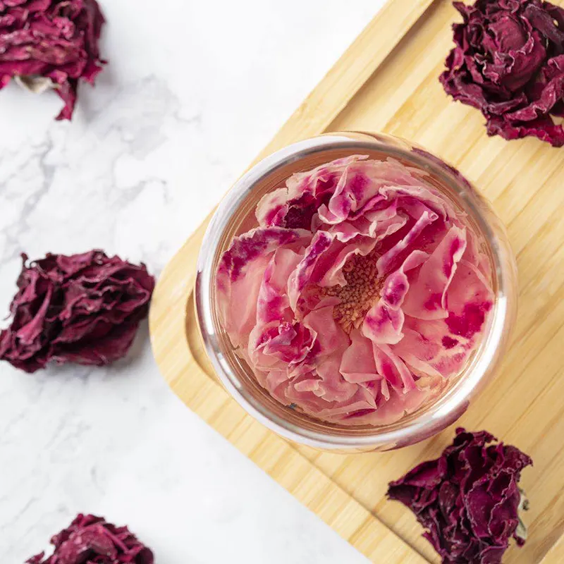 冷冻几小时再冲泡,还可能泡出奇妙的紫色花茶汤,这都是墨红玫瑰含有大量花青素的原因。
