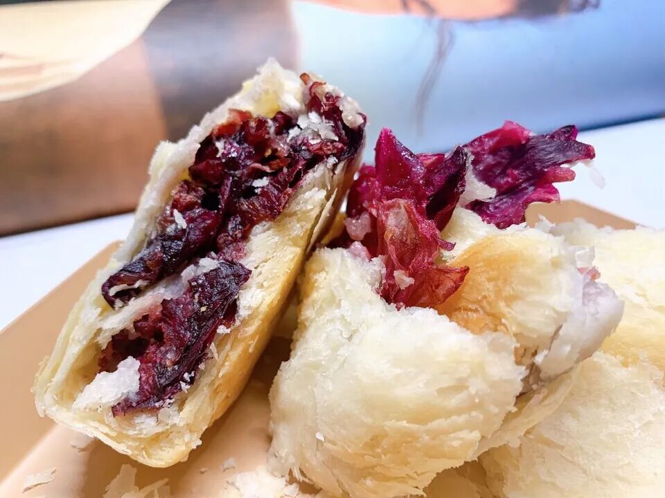 掰开层层叠叠的酥皮,大片的花瓣也清晰可见,一口咬下,酥香软韧,太好吃!