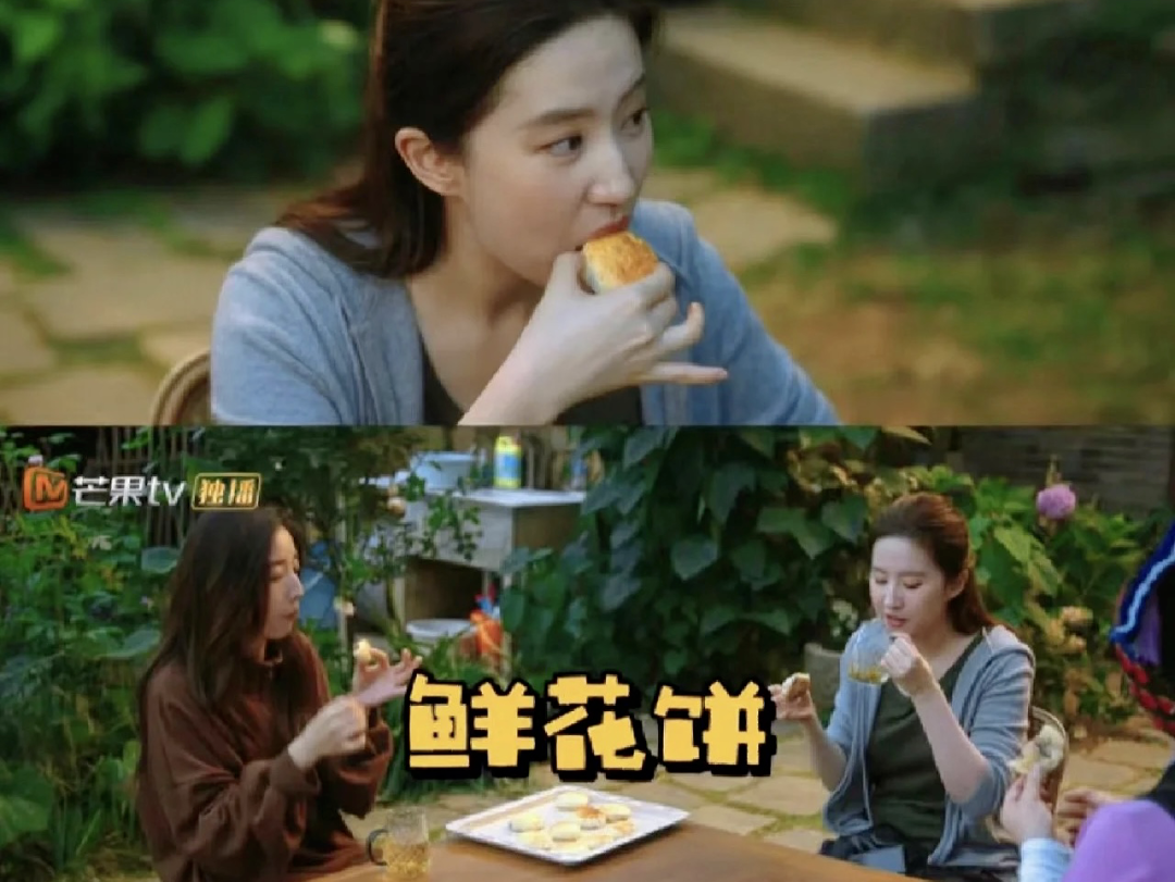 ▲《去有风的地方》中刘亦菲吃鲜花饼