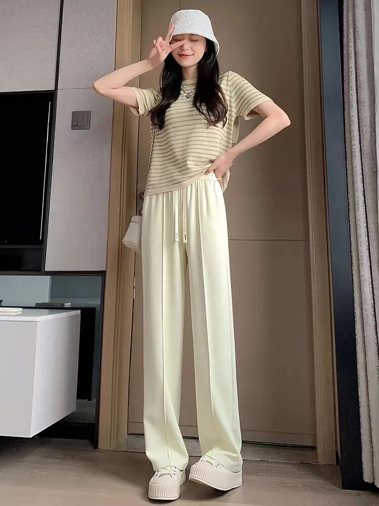2.垂坠感+收腰围+阔腿裤型,很多小仙女都是靠它让视觉体重“保持”在100以内~