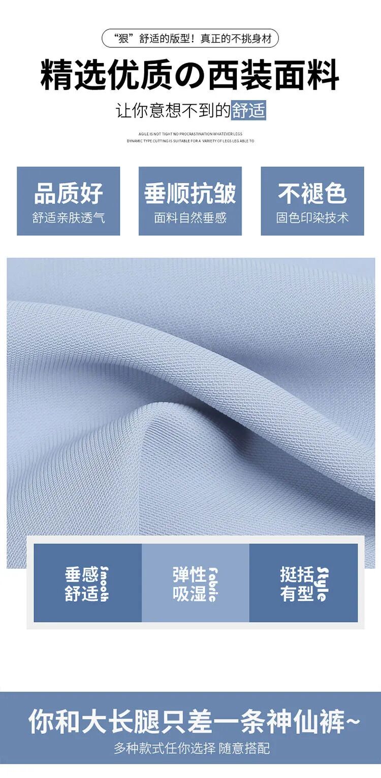 专柜级优质西装面料,兼具冰丝裤的舒适和西装裤的时髦,不挑个子、不挑身材、不挑年龄,百搭气质怎么穿都好看。
