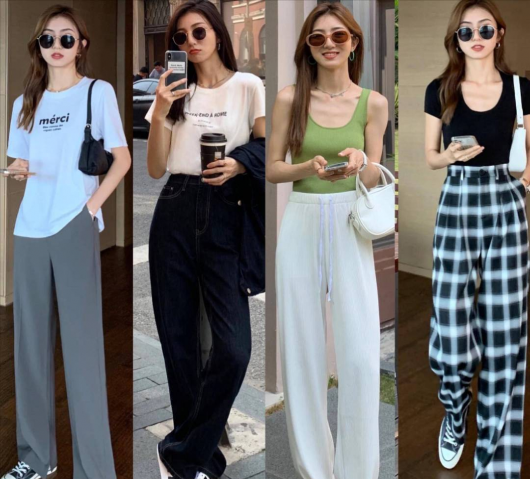 垂感极强的裤腿,粗腿、O型腿装女孩一秒爱上,春夏必须来一条。