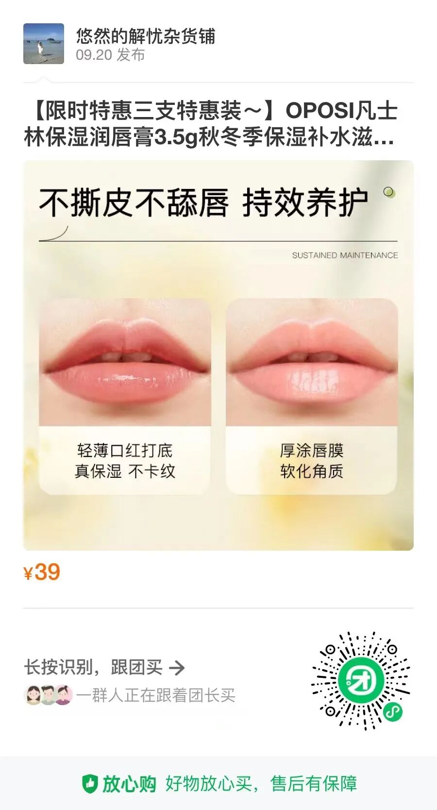 这款润唇膏不仅能解决干皮,还添加了多重植物果油,深入舒缓,告别干、纹、糙,保持唇部健康活力
