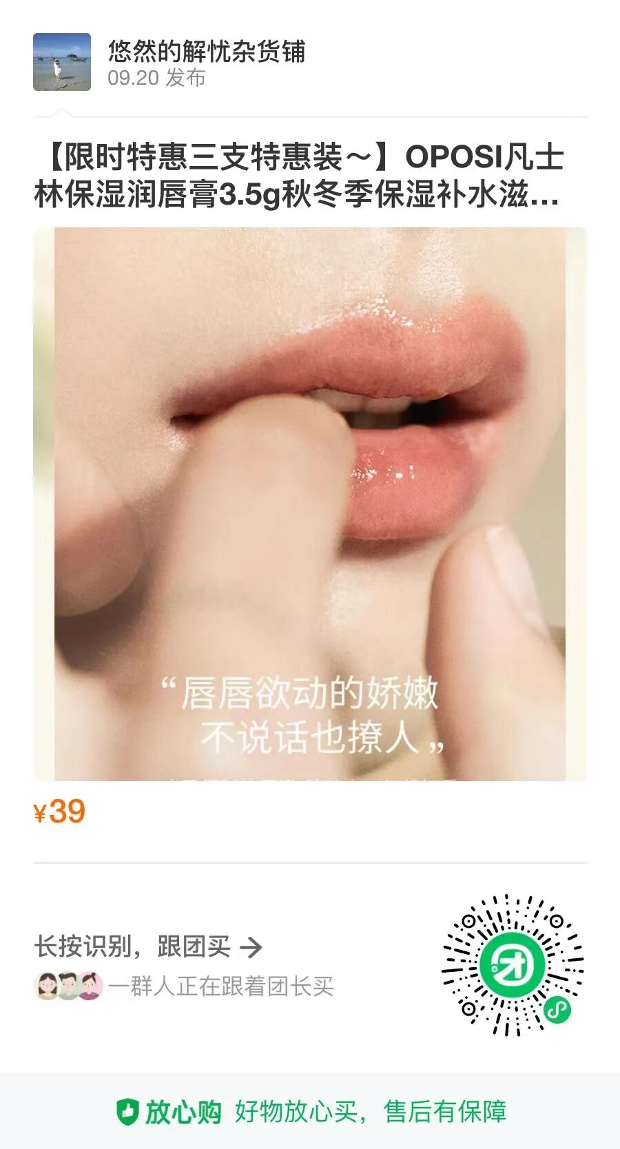 今天就给大家推荐这款OPOSI凡士林保湿润唇膏