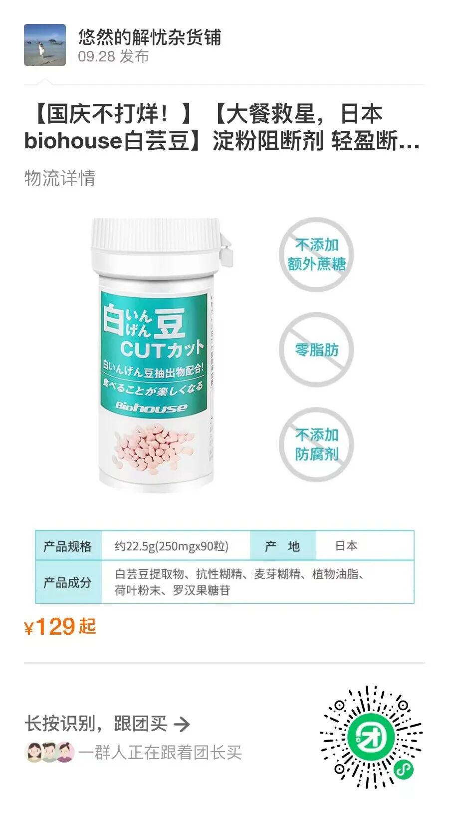 因为我自己吃过有效,这次品牌进入中国市场,好不容易给大家争取到了低至65折的专属优惠,现在优惠价129元/瓶,多买优惠更大。