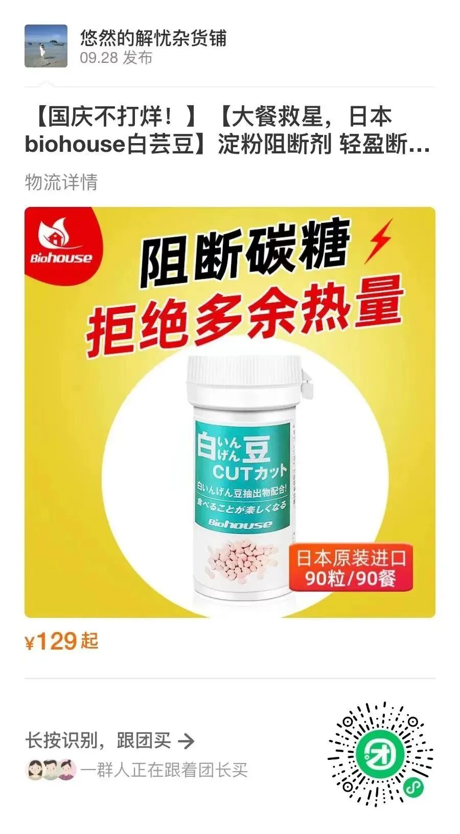 日本健康品牌Biohouse出了一款抗糖吸油片,性价比很高。