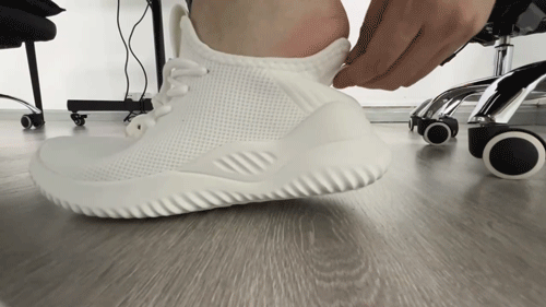 它的鞋面采用3D纤维编织工艺,一个色仅用一根线,全程不断续地编成一只鞋子!