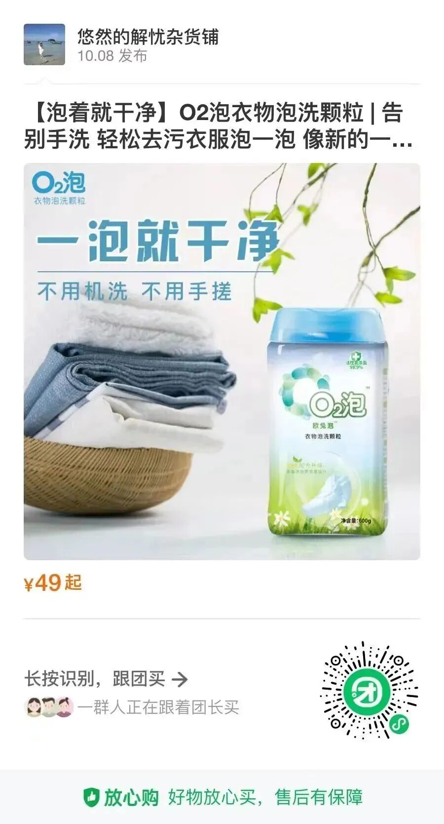 所以找对洗涤产品很重要,今天就想和大家介绍一款一泡就干净,不用机洗,不用手搓的“O2泡衣物洗颗粒”。