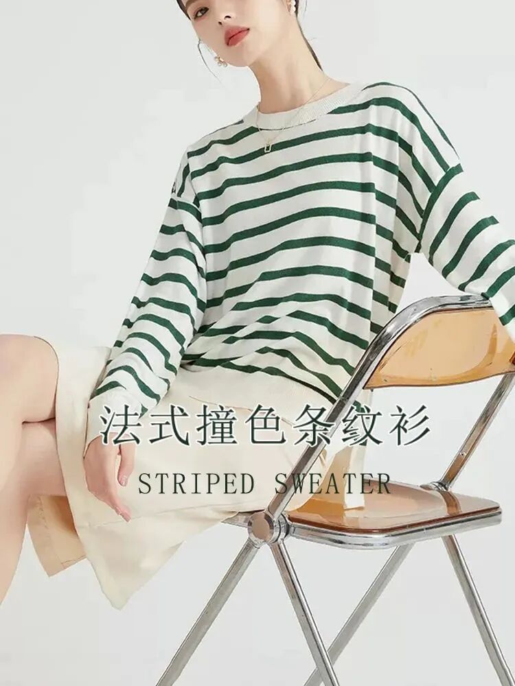 法式轻奢条纹针织衫