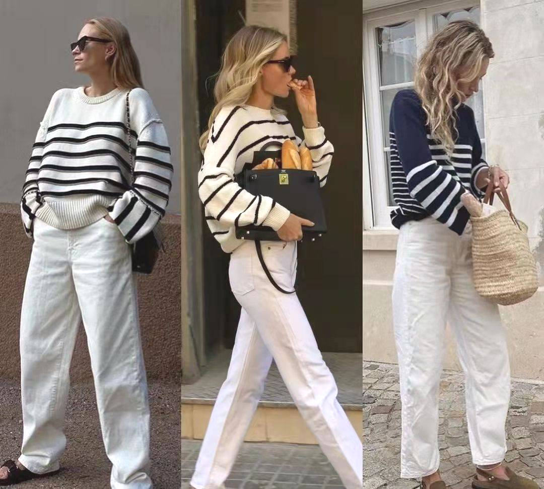 1.经典条纹针织衫,法式风情不过时