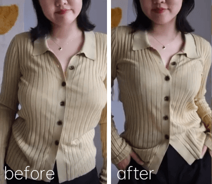 恰到好处的外扩弧度,视觉上腰都细了一圈,整个胸型自然不僵硬,身材比生孩子前都要辣。